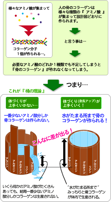 このたくさんのアミノ酸を使って体の骨を作るのに最適な環境づくりをし